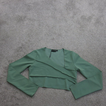 Pretty Little Thing Womens Wrap Top V Neck Long Sleeves Solid Green Size 10