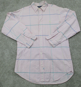 Ralph Lauren Button Down Shirt Mens Size 34 Pink Green Plaid Long Sleeves Shirt