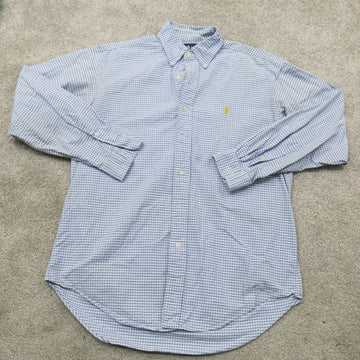 Ralph Lauren Men Button Down Shirt Blake 100% Cotton Collar Check Gray Size L