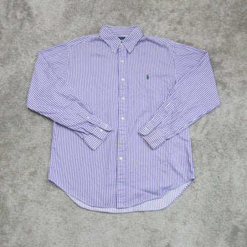 Ralph Lauren Men Striped Button Down Shirt Classic Fit Long Sleeves White Blue L