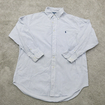Ralph Lauren Mens Button Down Shirt Top Yarmouth 100% Cotton Check Sky Blue L