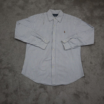 Ralph Lauren Mens Custom Fit Long Sleeve Button Down Shirt Blue White Size Large