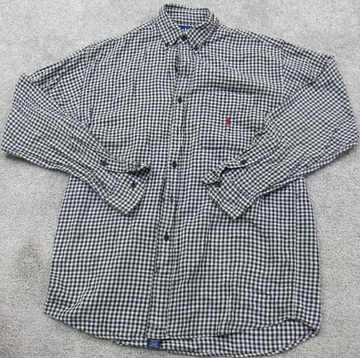 Ralph Lauren Mens Gingham Button Up Logo Shirt Long Sleeves Black White Medium