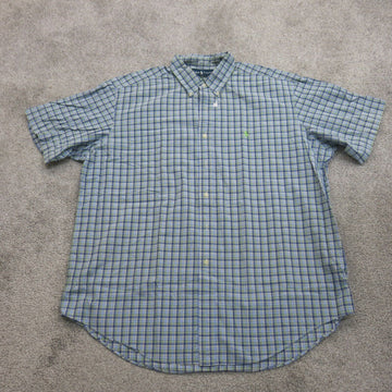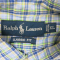 Ralph Lauren Mens Plaid Button Down Shirt Classic Fit Cap Sleeve Blue Size XL