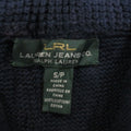 Ralph Lauren Women Pullover Knitted Sweater 100% Cotton High Neck Navy Blue SZ S