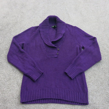 Ralph Lauren Women Pullover Sweater Long Sleeves Front Button Purple Size Large