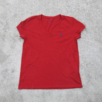 Ralph Lauren Women Pullover T- Shirt Top Short Sleeve V-Neck Logo Red Size Small