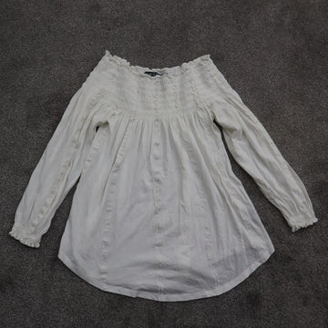 Ralph Lauren Womens Blouse Top Neck Off Shoulder Long Sleeves White Size XS