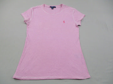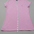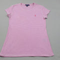 Ralph Lauren Womens Striped T Shirt Short Sleeves Logo Pink White Size Medium