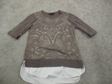 Simply Vera Vera Wang Women Pullover Sweater Shirt Round Neck Brown Size Medium