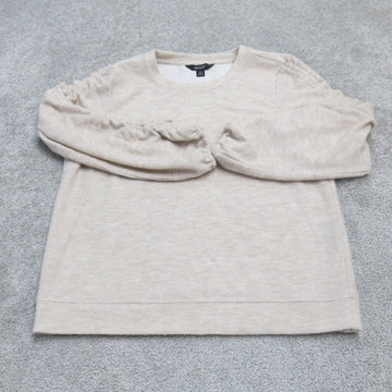 Simply Vera Wang Womens Pullover Sweater Crew Neck Ruched Sleeves Beige XS