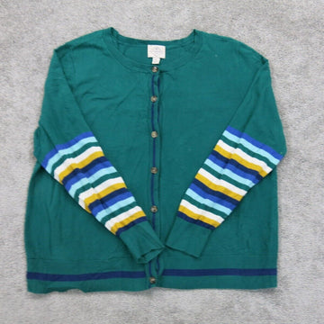ST Johns BAY Women Cardigan Sweater Long Sleeve 100% Cotton Green Size XL