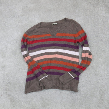 ST Johns Bay Womens Pullover Sweater Keef Neck Long Sleeves Striped Brown Large