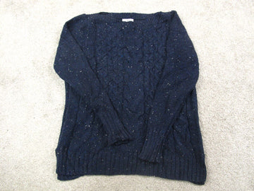 ST Johns Bay Womens Pullover Sweater Knitted Crew Neck Long Sleeves Navy Blue PL