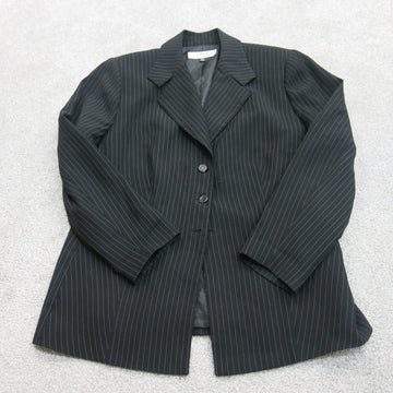 Tahari Men Striped Blazer Coat Jacket Front Button Long Sleeve Pockets Black 14W