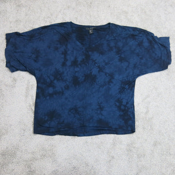 Tahari Women Blouse Top Balloon Sleeves Round Neck Tie Dye Blue Size Small