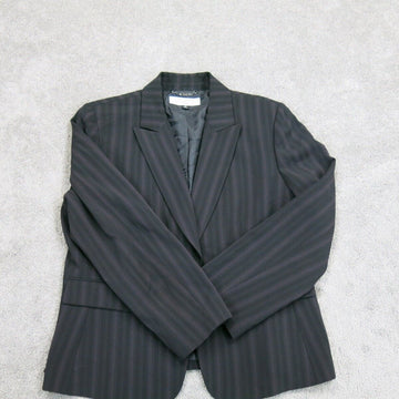 Tahari Women Striped Blazer Coat Front Button Long Sleeve Pockets Black Gray 169