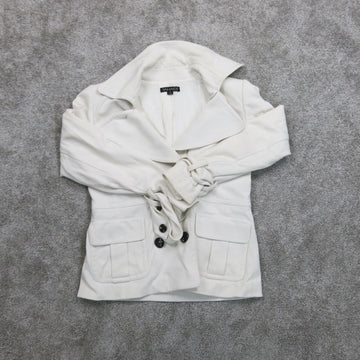 Tahari Womens Jacket Long Sleeves Coat Collar Neck Button White Pockets Size 6