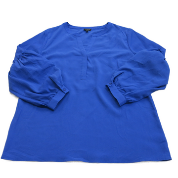 Talbots Women Casual Blouse Top V Neck Long Sleeve Navy Blue Size Large