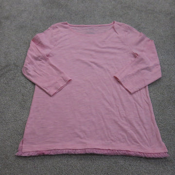 Talbots Womens Casual Shirt Blouse Long Sleeves Round Neck Pink Size Medium
