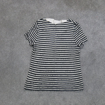 Talbots Womens Knitted Blouse Top Striped Short Sleeve Round Neck Black Size M