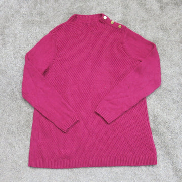 Talbots Womens Knitted Sweater Long Sleeves Shoulder Button Round Neck Pink SZ M