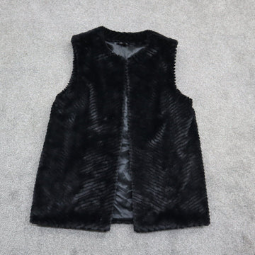 Talbots Womens Open Front Soft Fuzzy Vest Jacket Sleeveless Black Size X-Small