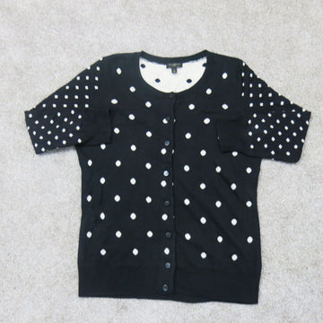 Talbots Womens Polka Dot Sweater Top Long Sleeves Black White Size P