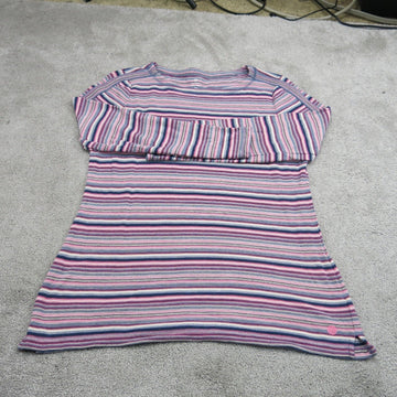 Talbots Womens Striped Knitted Sweater Top Long Sleeve Light Pink Blue Size MP