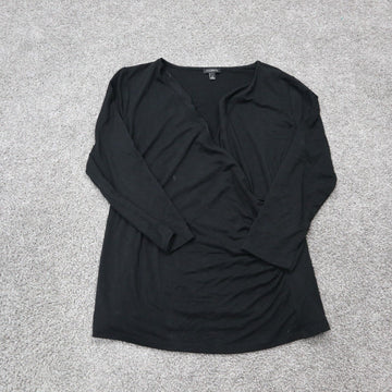 Talbots Womens Wrap Blouse Top Knitted 3/4 Sleeve V Neck Black Size Small