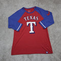 The Nike Tee Women Athletic Cut Crew Neck T Shirt Top 3/4 Sleeve Blue Red Size L