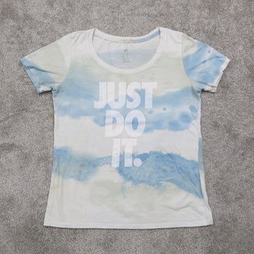 The Nike Tee Women Just Do It T Shirt Short Sleeves Round Neck Blue White SZ S/P