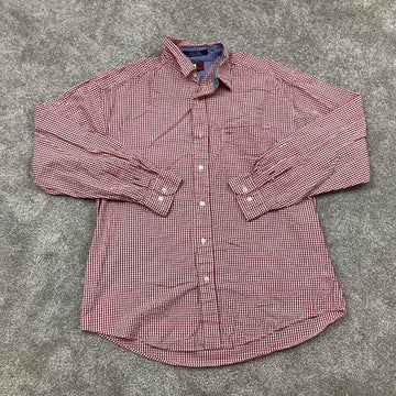 Tommy Hilfiger Button Down Shirt Mens SZ M Red White Gingham Checked Cotton Logo