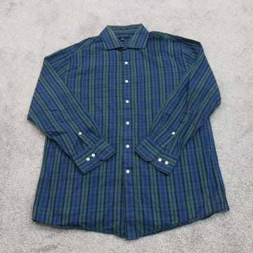 Tommy Hilfiger Mens Button Up Check Shirt Long Sleeve Blue Green SZ 16 1/2 32-33