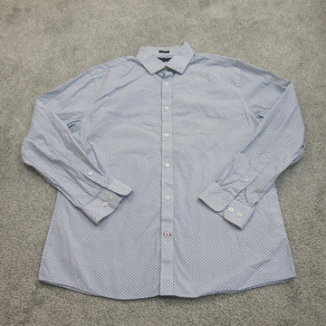 Tommy Hilfiger Mens Button Up Polka Dot Shirt Collard White Blue Size L 16 32/33