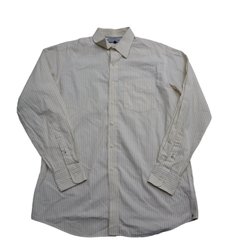 Tommy Hilfiger Mens Button Up Striped Shirt Long Sleeves Ivory Black Size M