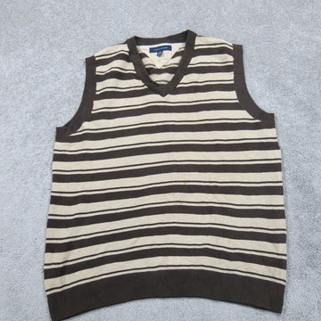 Tommy Hilfiger Mens Striped Vest Sweater Sleeveless V Neck Beige Brown Size XXL