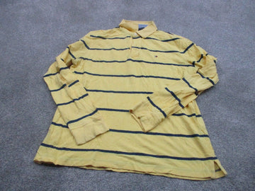 Tommy Hilfiger Polo Shirt Mens Size Large Yellow Strip Short Sleeve Classic Fit