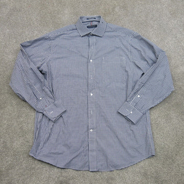 Tommy Hilfiger Shirt Mens Blue/white Large Check Button Up Regular Fit Stretch