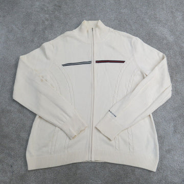 Tommy Hilfiger Sweater Womens X Large Cream Long Sleeve Casual Full Zip Outdoor