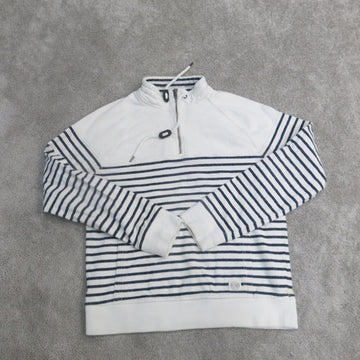 Tommy Hilfiger Sweatshirt Men Medium White Long Sleeve Pullover 1/4 Zip Striped