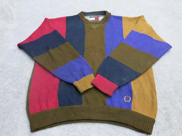 Tommy Hilfiger Women Pullover Sweater Crew Neck Long Sleeve Olive Green Blue XL