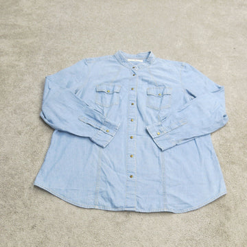 Tommy Hilfiger Womens Button Up Shirt Chest 2 Pockets 100% Cotton Blue Size 18