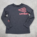 Umbro Shirt Top Boy Size Small Gray Long Sleeve Top Cotton Stretch Shirt Logo