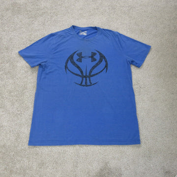 Under Armor Shirt Mens Large Blue Crew Neck Short Sleeve Graphic Tee Lightweight