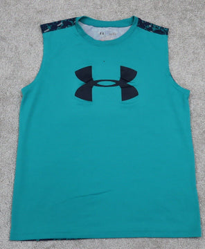 Under Armour Athletics Shirt Youth Girls Large Turquoise Heatgear Logo Sports