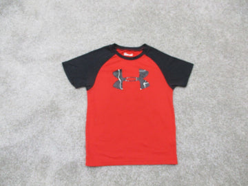 Under Armour Boys Crew Neck T Shirt Short Sleeves Pullover Red Black Size 4