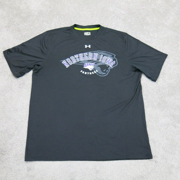 Under Armour Mens Crew Neck T Shirt Loose Heatgear Northern Iowa Panther Black L