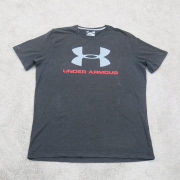 Under Armour Mens Crew Neck T Shirt Sports Loose Heatgear Logo Black Size Large