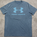 Under Armour Mens Graphics Logo T Shirt Short Sleeves Blue Medium HEATGEAR